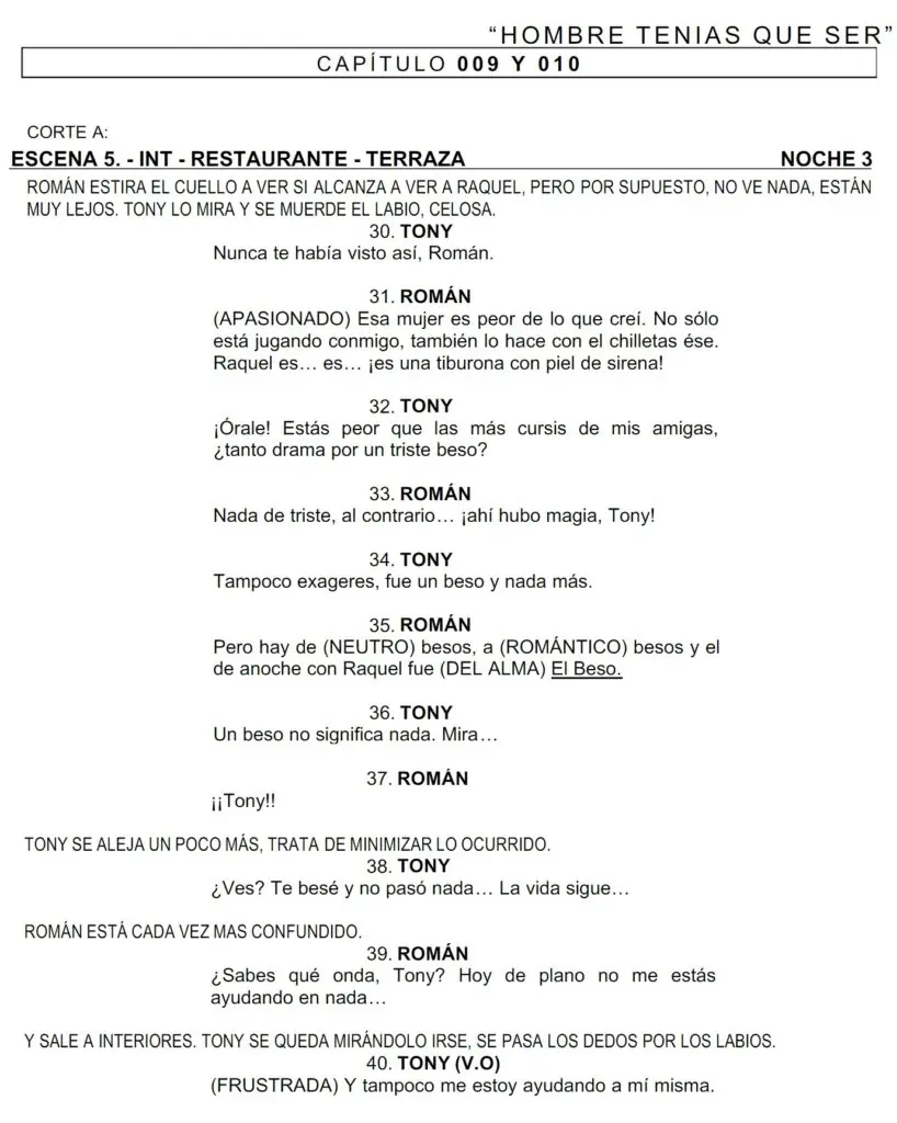 Extrait du scénario d’un épisode de « Hombre Tenías Que Ser »